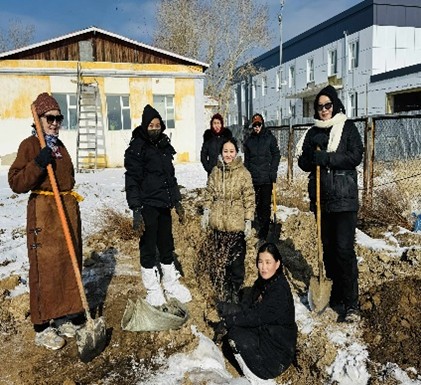 Үүнд: 1.Төвийн байрны эргэн тойронд 40х40см хэмжээтэй 500м шуудуу, 50х80 хэмжээтэй 400 ширхэг нүхийг техникийн хүчээр ухаж бэлтгэсэн.