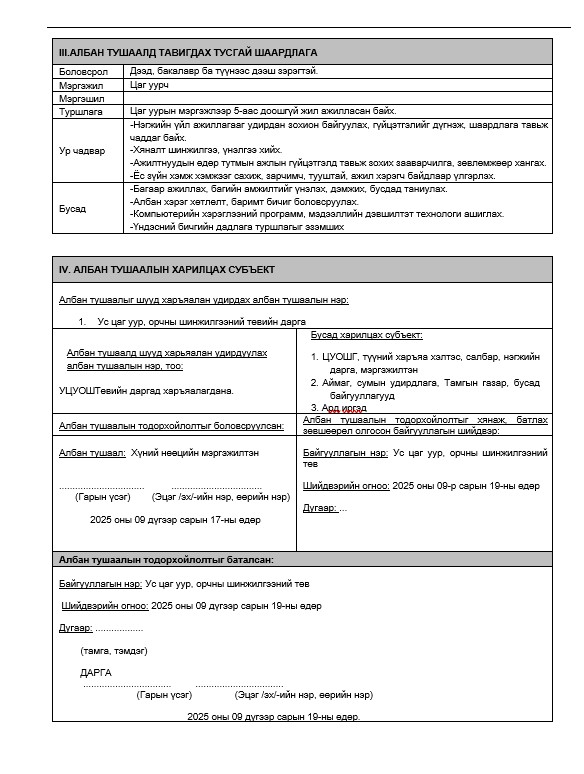 АЛБАН ТУШААЛЫН ТОДОРХОЙЛОЛТ